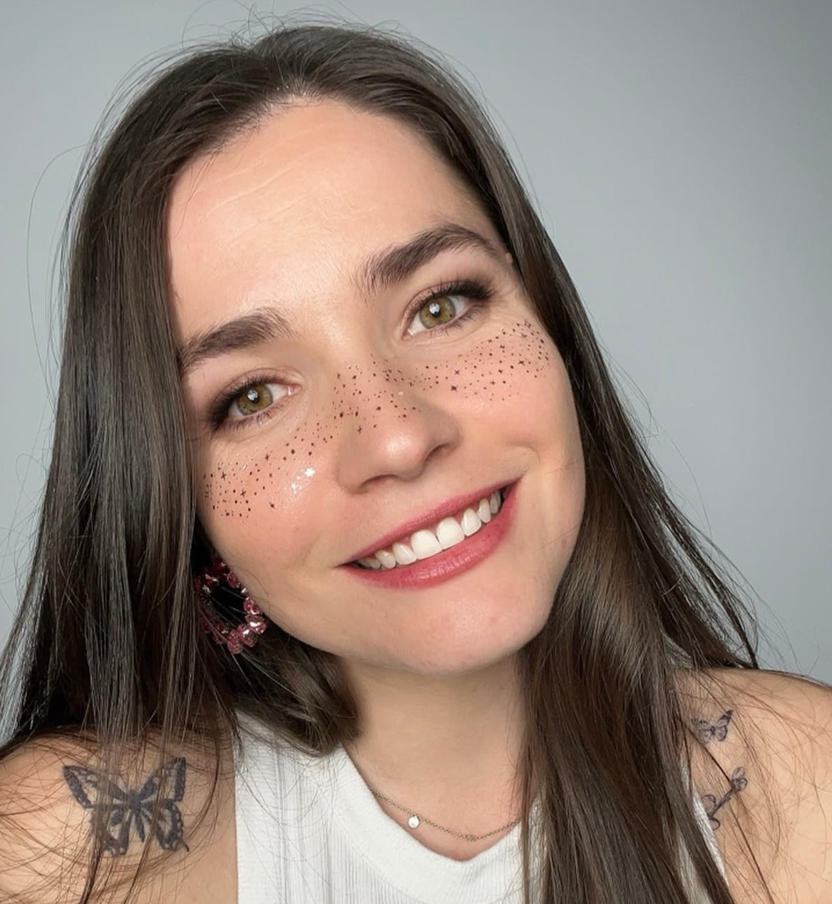 J’espère que nos patchs de taches de rousseur pailletées deviendront tes indispensables : ceux que tu glisseras dans ta trousse de maquillage, tes valises pour un festival, ou simplement pour ajouter un peu de magie à ton quotidien.